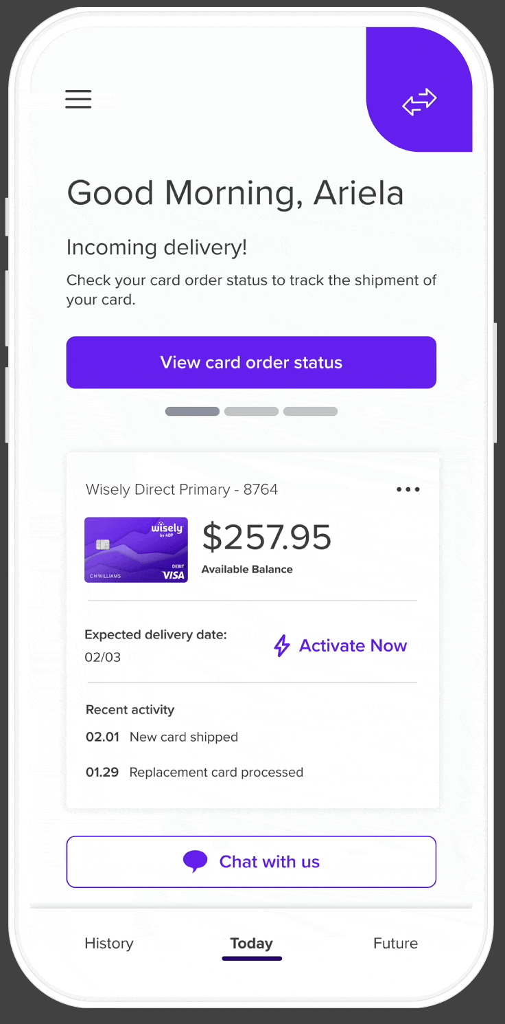 In this project, I designed a solution to optimize Wisely’s call center and reduce call volume by allowing users to track their card order, giving users more control and agency.